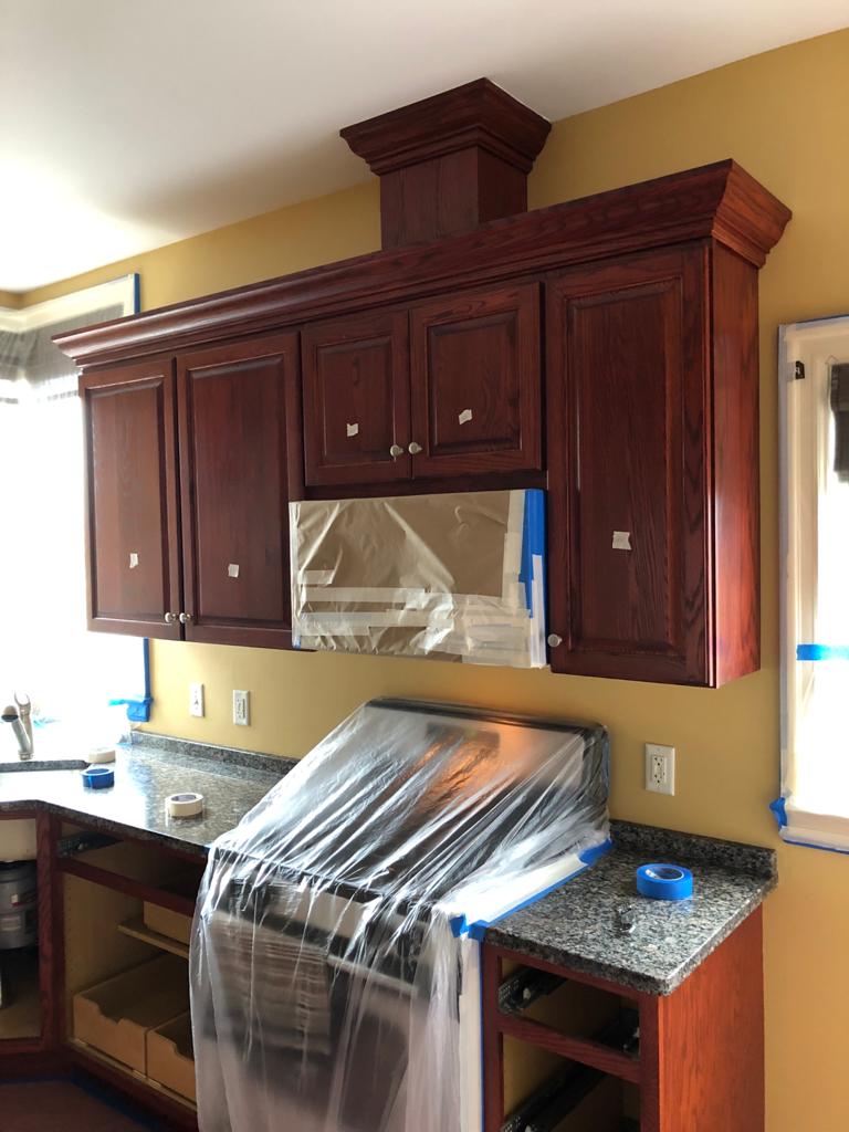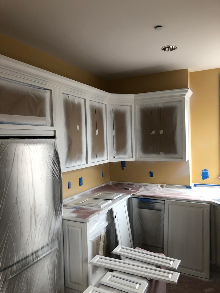 Painting cabinets is not as simple and easy as it seems. Your kitchen will be covered with plastic and during the time we are painting the cabinets, you will not be able to use your kitchen.  Hardware and doors are removed, cabinets need to be carefully sanded to remove old paint or varnish. Then, a base paint is applied and then a highquality coat of paint, specifically for cabinets. You will be amazed with your new kitchen!