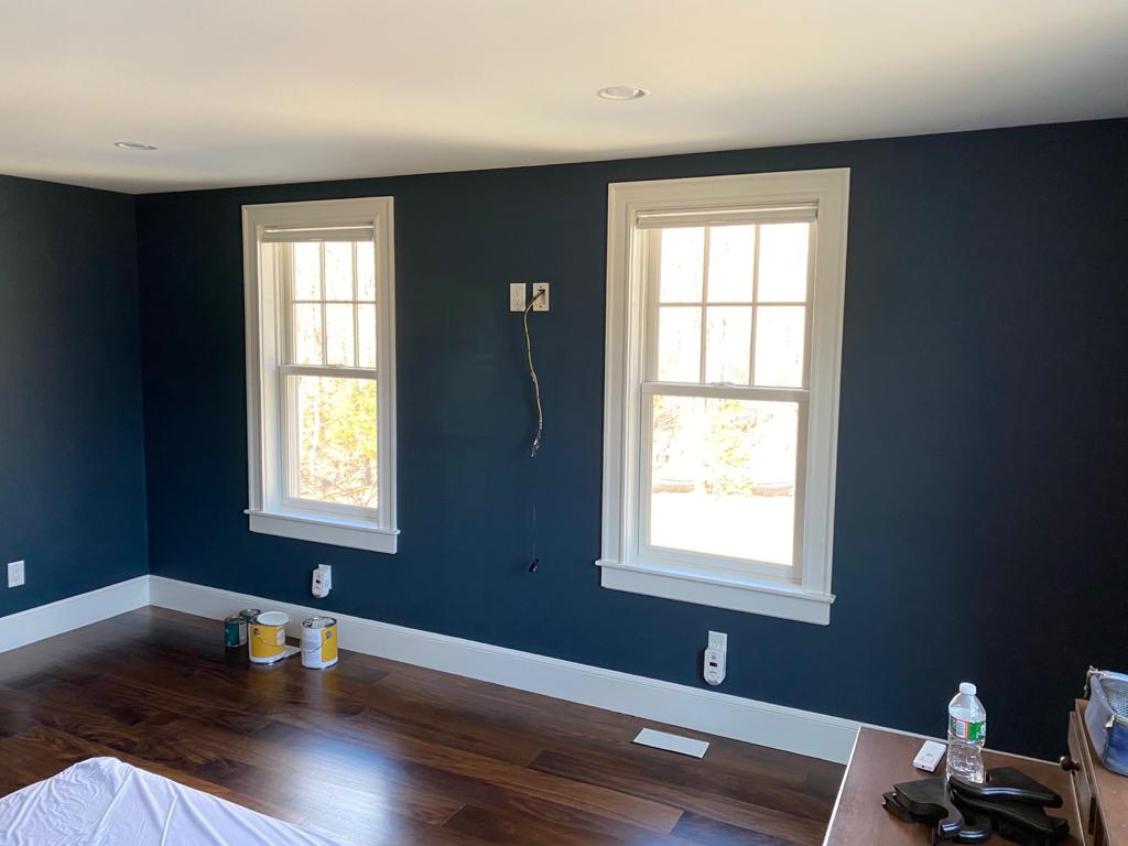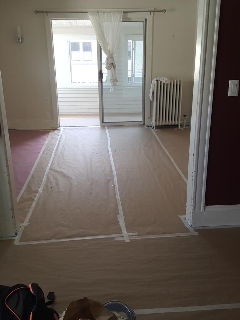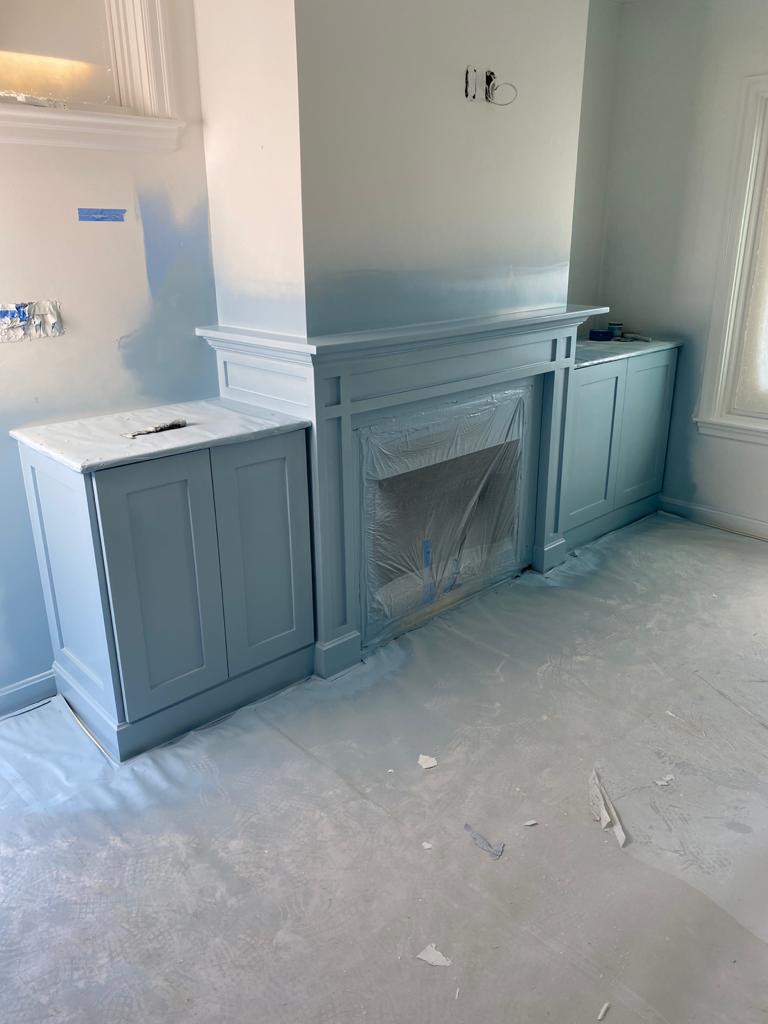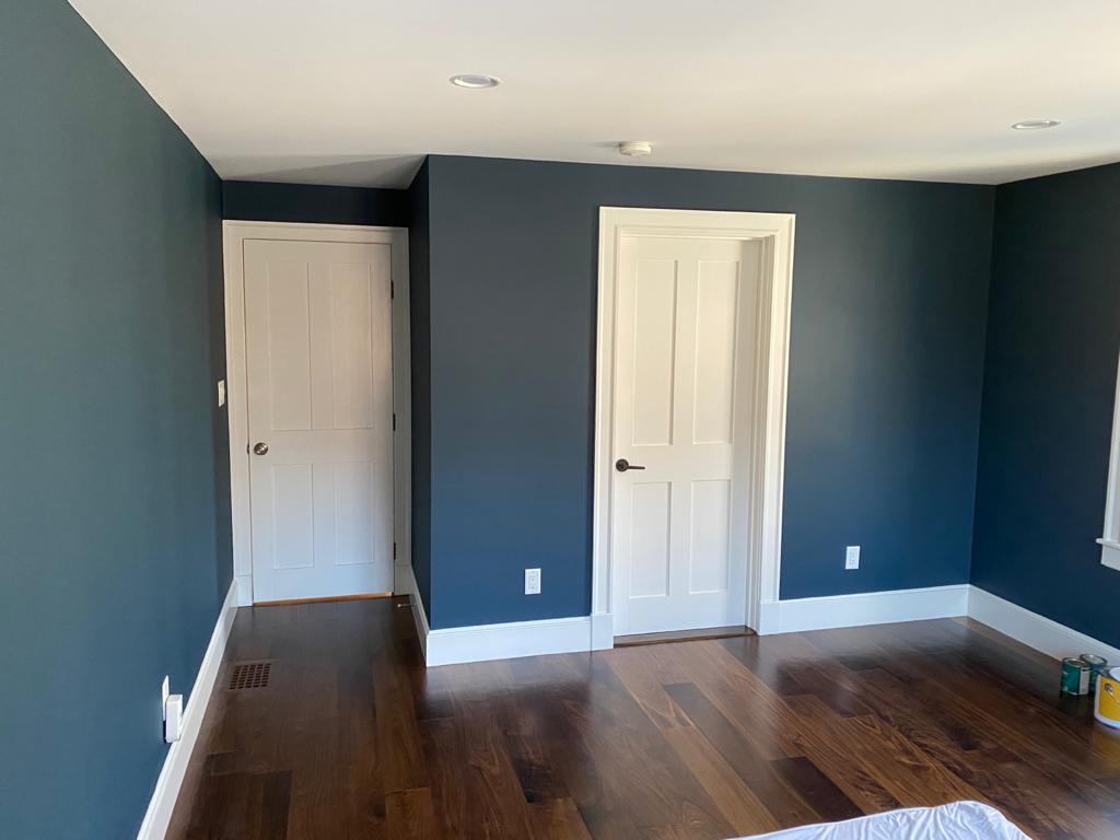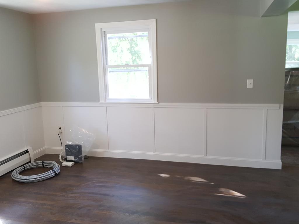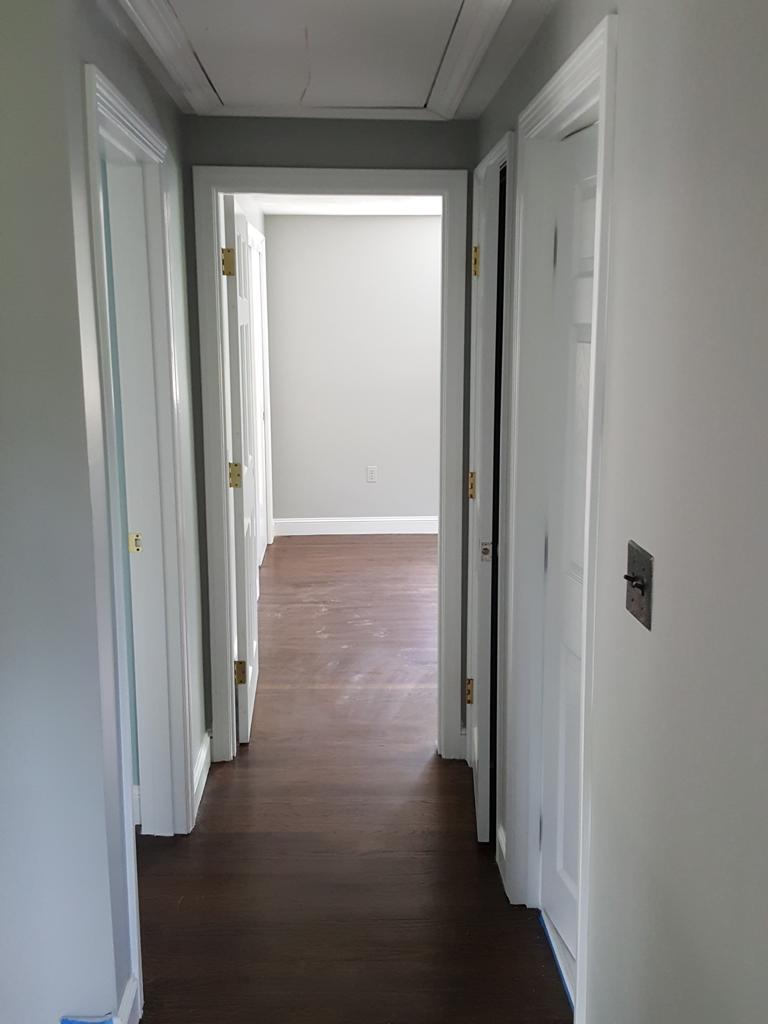 • Painting*: Ceilings and walls are primed (trims are also primed if necessary), then ceilings, trims, baseboards, doors and walls receive a fresh coat of paint. We use rollers and brushes but we also can spray paint.
