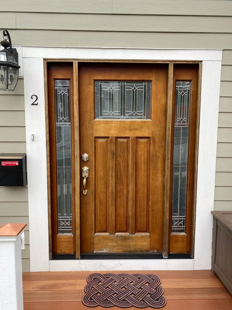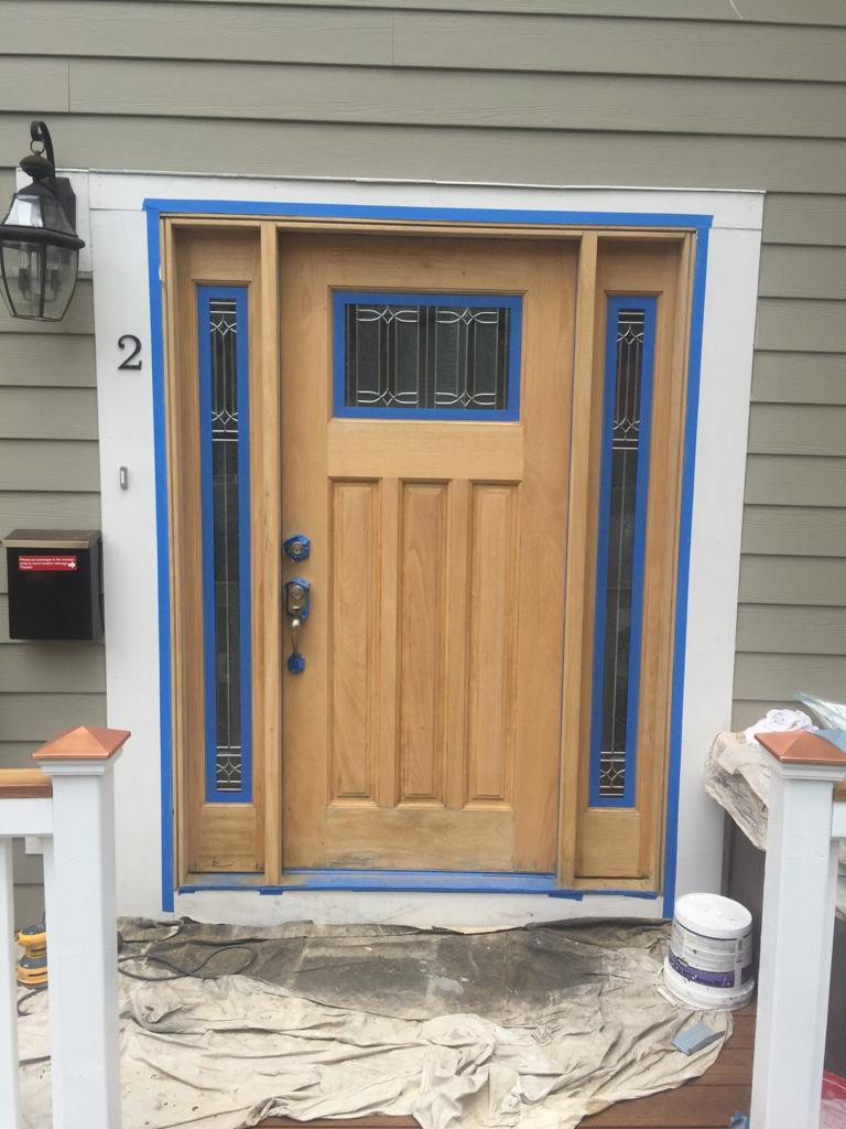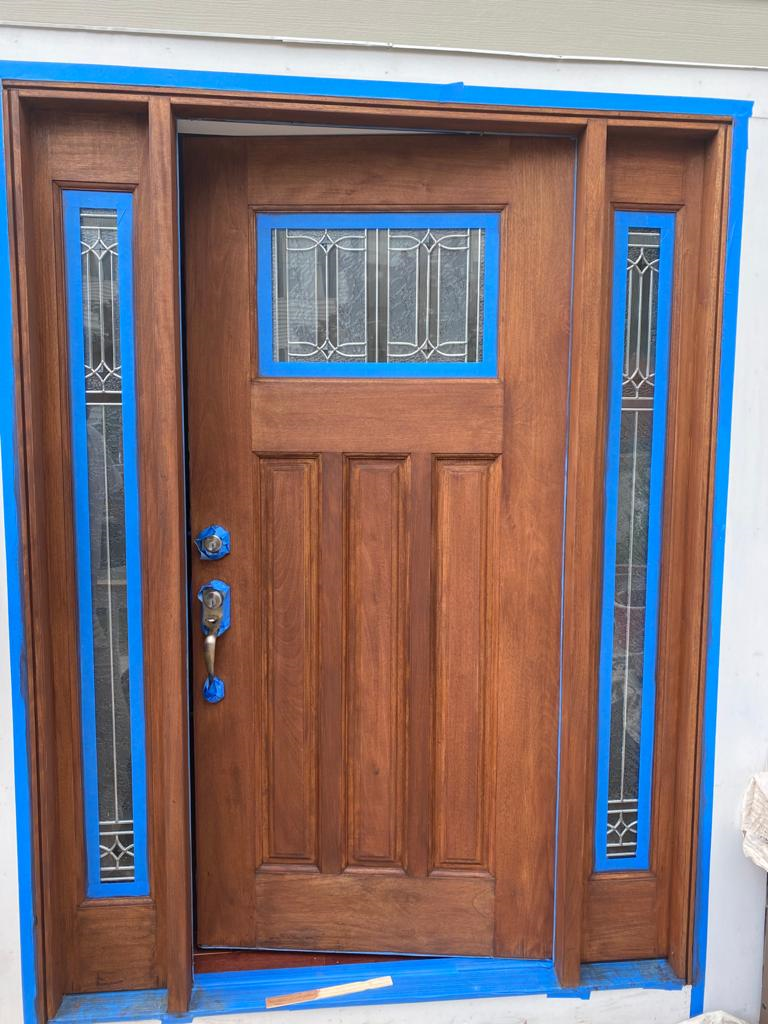 Wood Stain is a type of paint used to color wood. Does the deck of your home need a renovation? Do you want to update your front door or the interior stair handrail? Stain brings back the beautyof the wood.The typical process of wood stain in the interior or exterior includes, scraping old stain, power washing to remove dirt (exterior only), and sand to keep the wood smooth. Then finally apply a coat of stain. And for protection and a pretty good shine finish, apply three coats of polyurethane over stain.